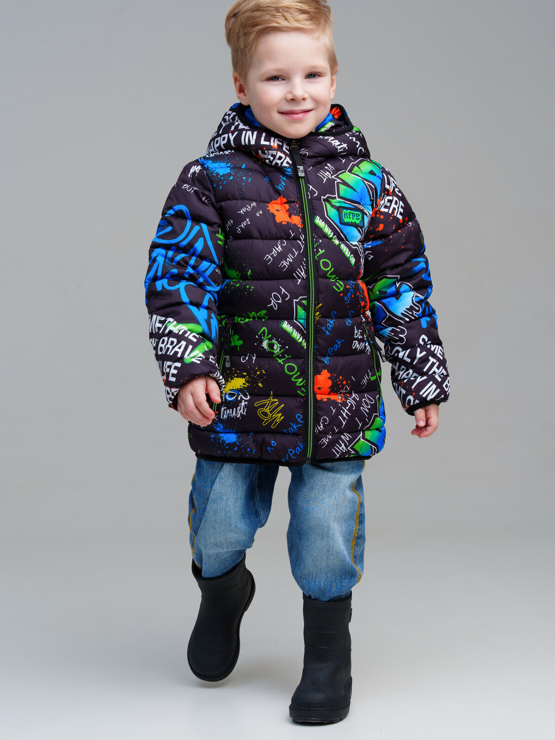 Куртка детская демисезонная для мальчика. Температурный режим до -5°С*. Линия DEMI - оптимальный вариант для переменчивой осенней и весенней погоды. Материал верха с ветрозащитным и водоотталкивающим покрытием. Гладкая подкладка максимально комфортна для надевания изделия. Внутренняя ветрозащитная планка под молнией. Манжеты и низ изделия на эластичной резинке. Два боковых кармана на молнии. Несъемный капюшон на резинке. *Пожалуйста, обратите внимание, что указанный температурный режим является приблизительным и зависит от многих факторов, таких, как возраст, физическое состояние, уровень активности ребенка и количество слоев одежды. Время, проведенное на открытом воздухе, и погодные условия, такие как холодный ветер, могут повлиять на тепловые характеристики изделия. Убедитесь, что защищены от холода голова, руки и ноги.