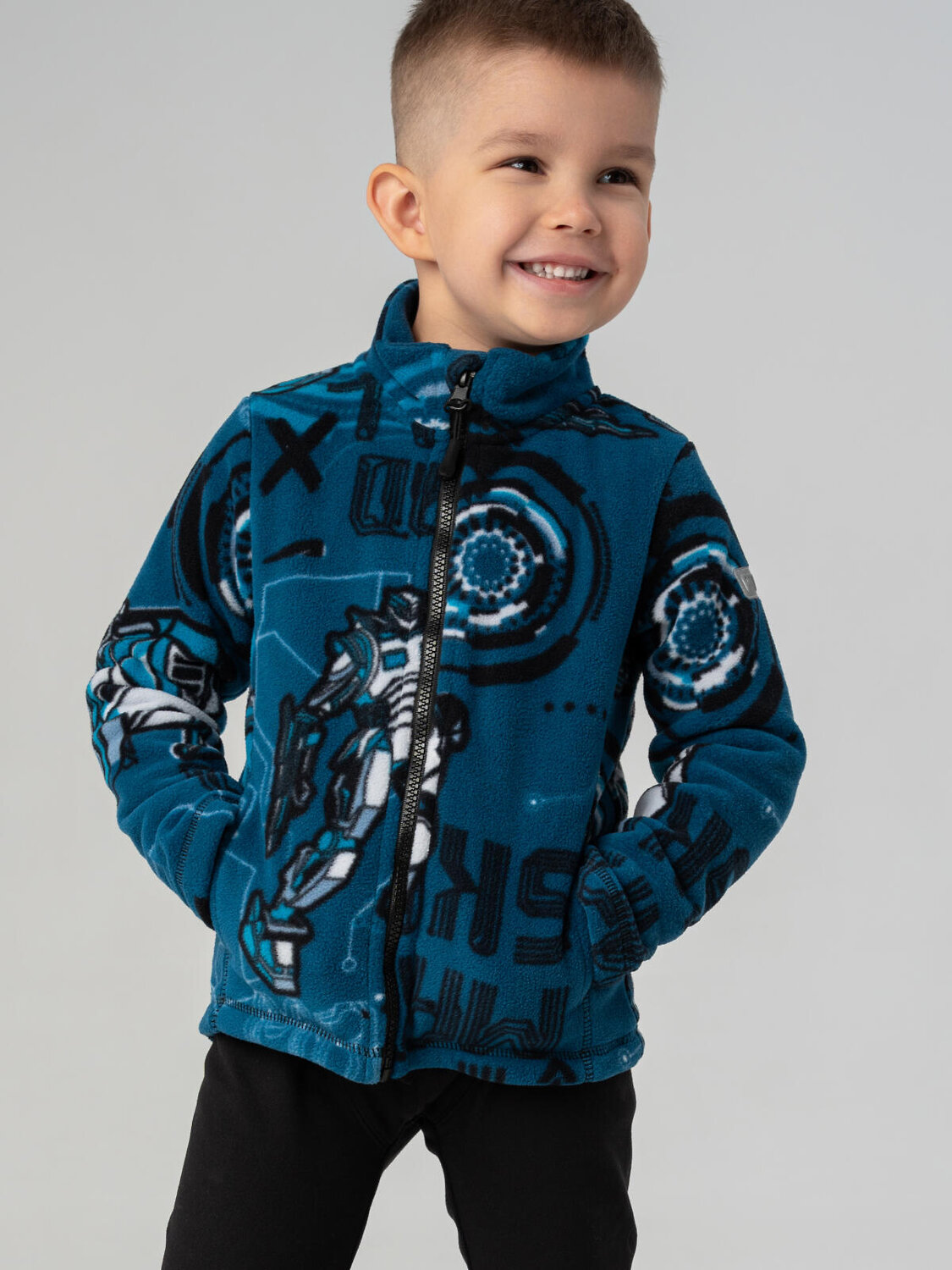 Эта детская флисовая кофта на молнии — практичный и тёплый выбор для повседневных прогулок, детского сада и активных игр на свежем воздухе. Подходит как флисовая куртка для мальчика, утеплённая кофта на замке или средний слой под зимнюю одежду.