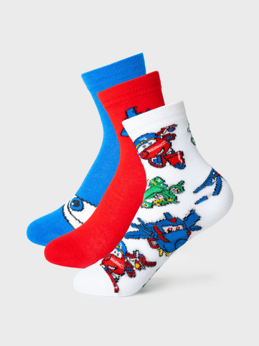 Набор из трех пар детских носков для мальчика. В комплект входят модели с полосками, однотонные и с принтом. Удобная резинка не сдавливает ногу, а на стопе — аккуратная жаккардовая надпись с размером. Материал — мягкий хлопковый трикотаж.