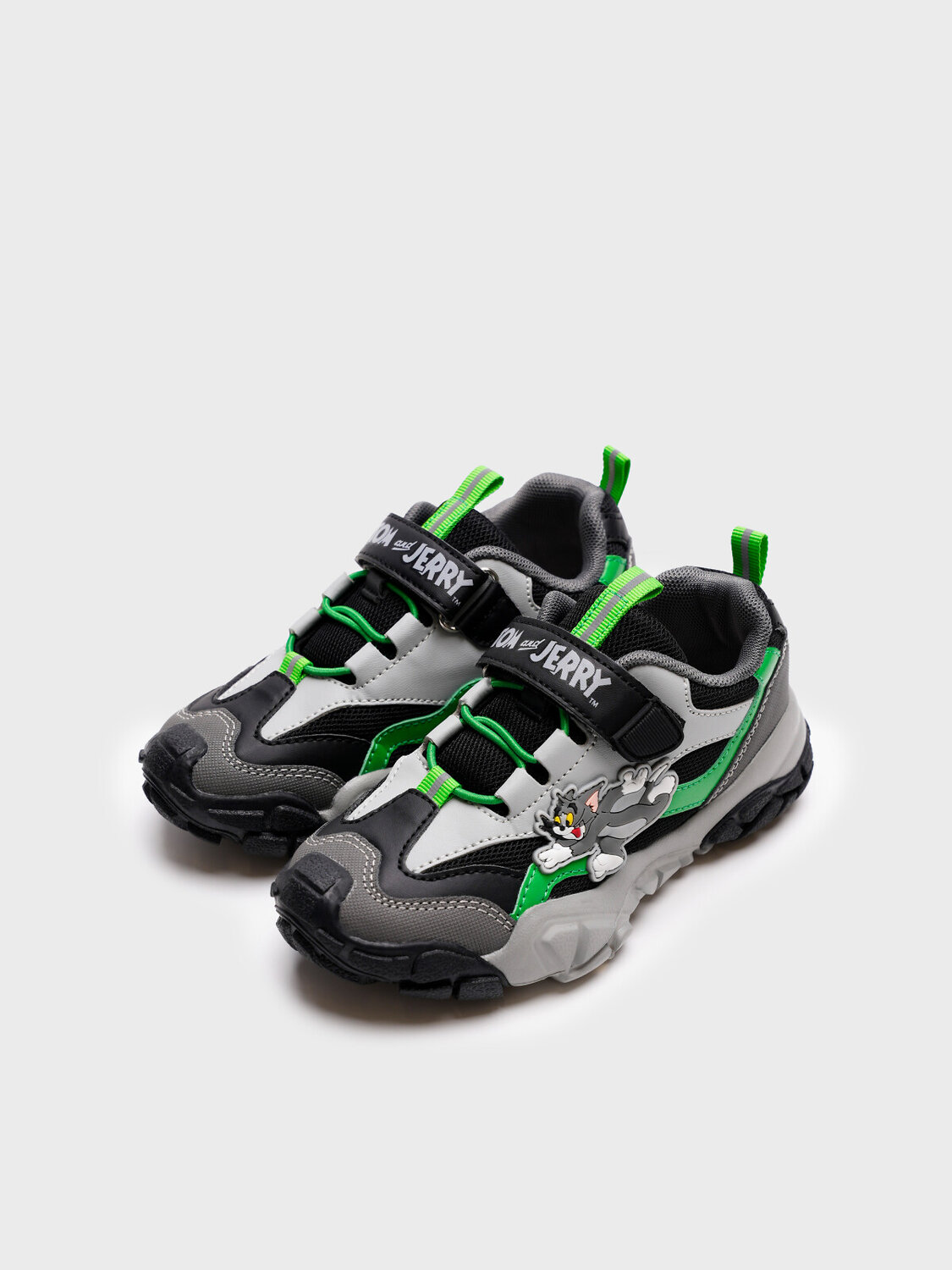 Кроссовки детские для мальчика. Кроссовки выполнены из искусственной кожи, обладающей высокими эксплуатационными свойствами, и дышащего текстиля. Носочная часть усилена специальным защитным материалом. Кроссовки декорированы патчами с милыми мордочками героев WARNER BROTHERS (Уорнер Бразерс) мышонок Jerry (Джерри) и кот Том (Tom). В носочной части обуви стоит текстильная подкладка c высоким содержанием хлопка 80%, которая обладает высокой гигроскопичностью. В пяточной части обуви текстильная подкладка обладает хорошей износостойкостью. Эластичные шнурки и липучка создают удобство при обувании и надежно фиксируют ногу. Профилированная стелька из свиной кожи с анатомической формой подсводника обеспечивает правильную нагрузку на стопу. Формоустойчивый задник поддерживает стопу в правильном положении. Эргономичная форма колодки обеспечивает правильное формирование стопы ребенка. Двухсоставная подошва из ТПР гибкая, не скользит и устойчива к истиранию. Имеются светоотражающие элементы.