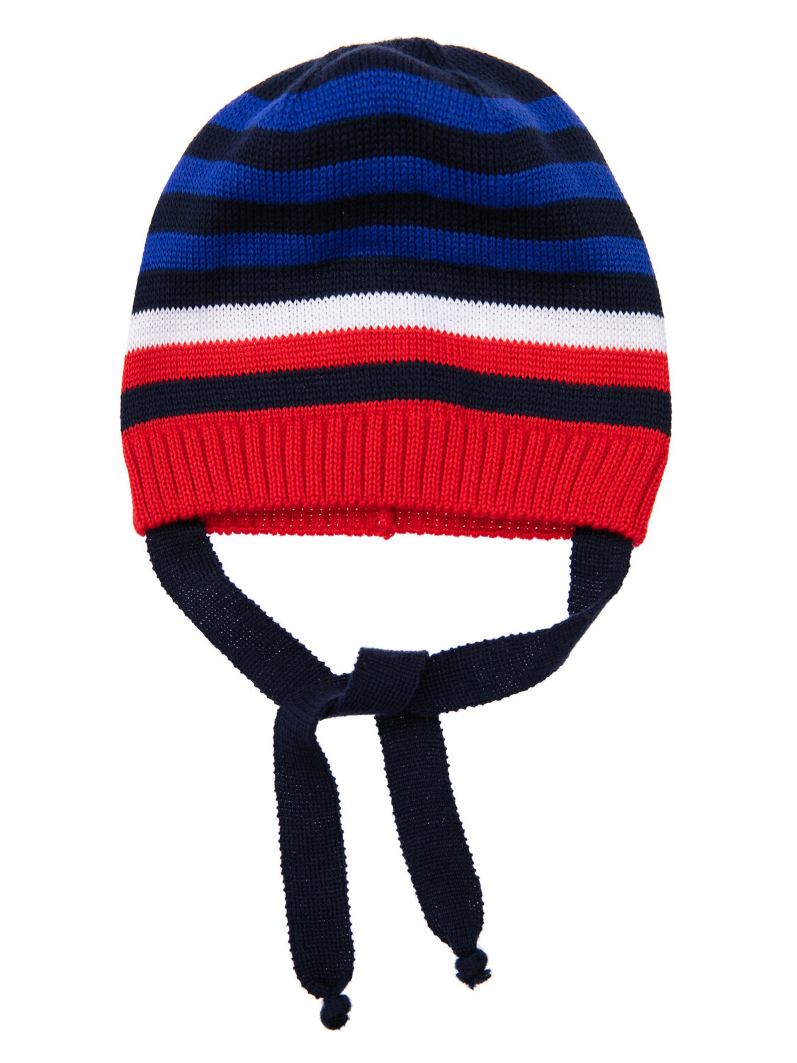 Шапка из вязаного трикотажа. Высокое содержание хлопка в составе нити. Завязки.