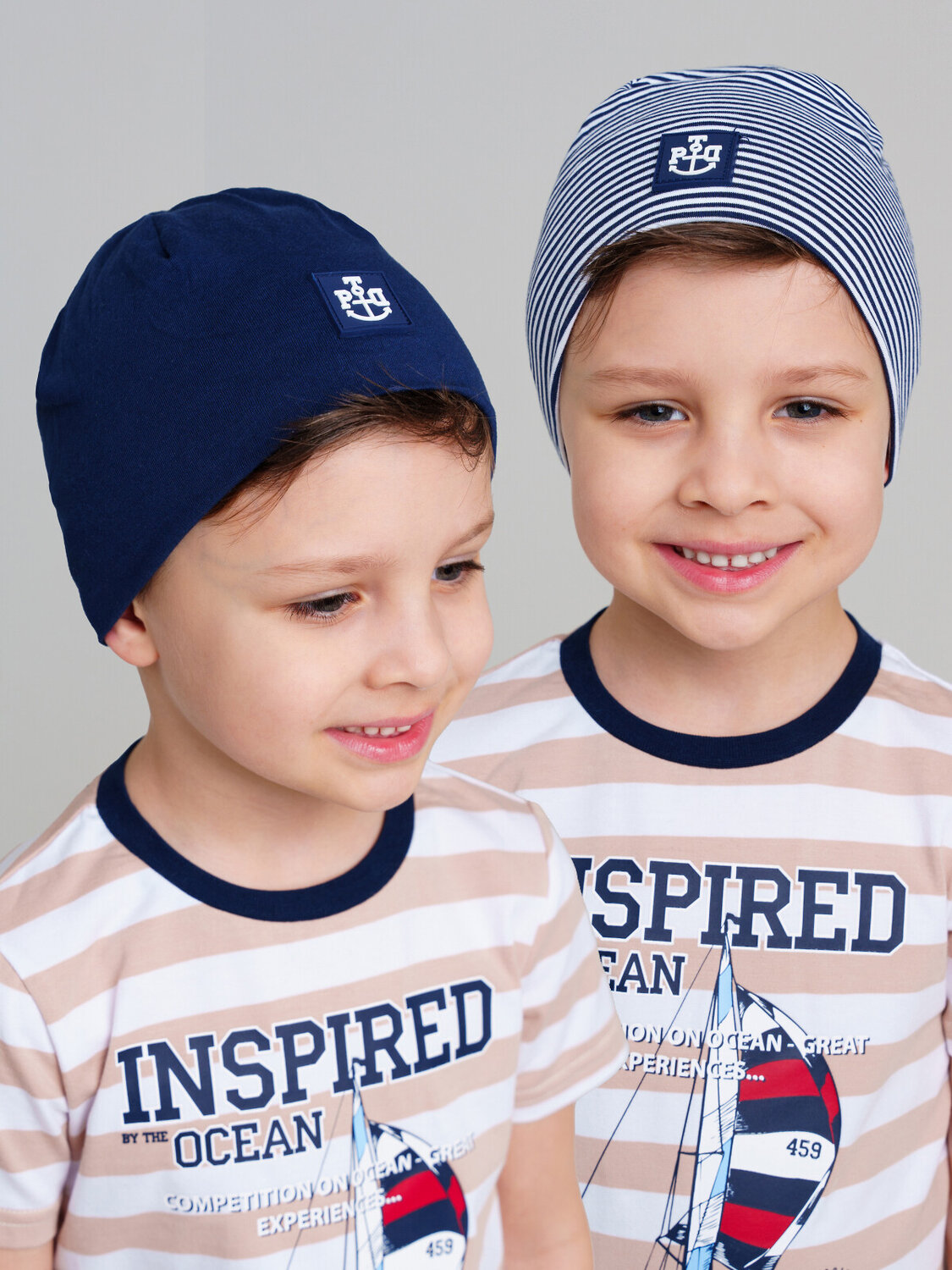 Набор детских шапок для мальчика. Шапка из качественного и приятного на ощупь трикотажа джерси. Модель с высоким содержанием хлопка 95%. Благодаря наличию эластана в составе ткани изделие проще в уходе и держит форму.