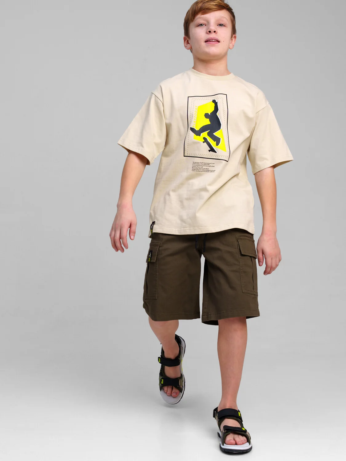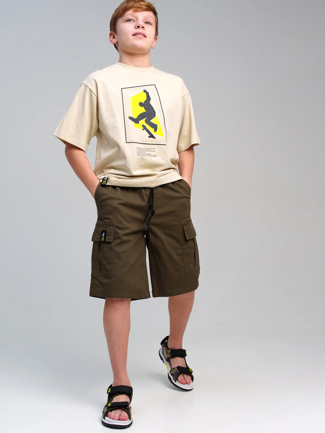 Шорты для мальчика подростка. Высокое содержание хлопка. Шорты на резинке со шнурком. Функциональные боковые и накладные карманы. Модель выполнена из качественного и плотного текстиля.