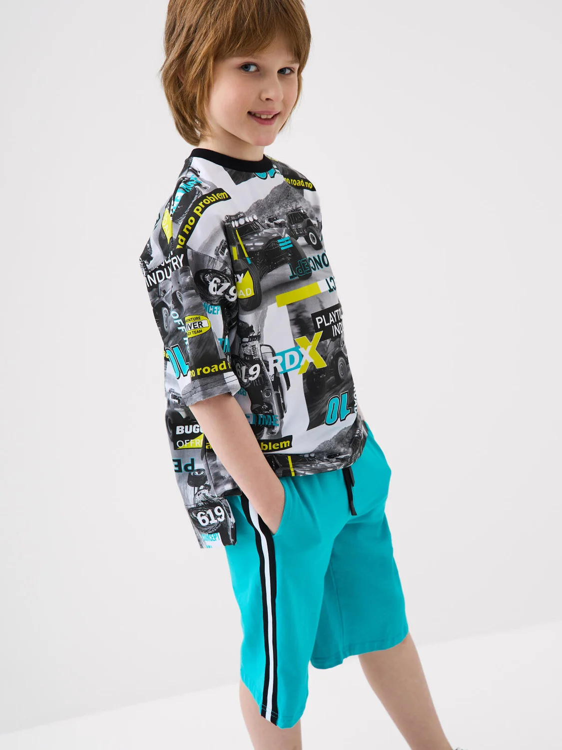 Набор шорт для мальчика подростка. В комплект входят две пары шорт свободного кроя, ниже колена. Модели из мягкого, хлопкового трикотажа джерси. Удобная посадка обеспечивается эластичным поясом со шнуром. По бокам расположены два кармана.
