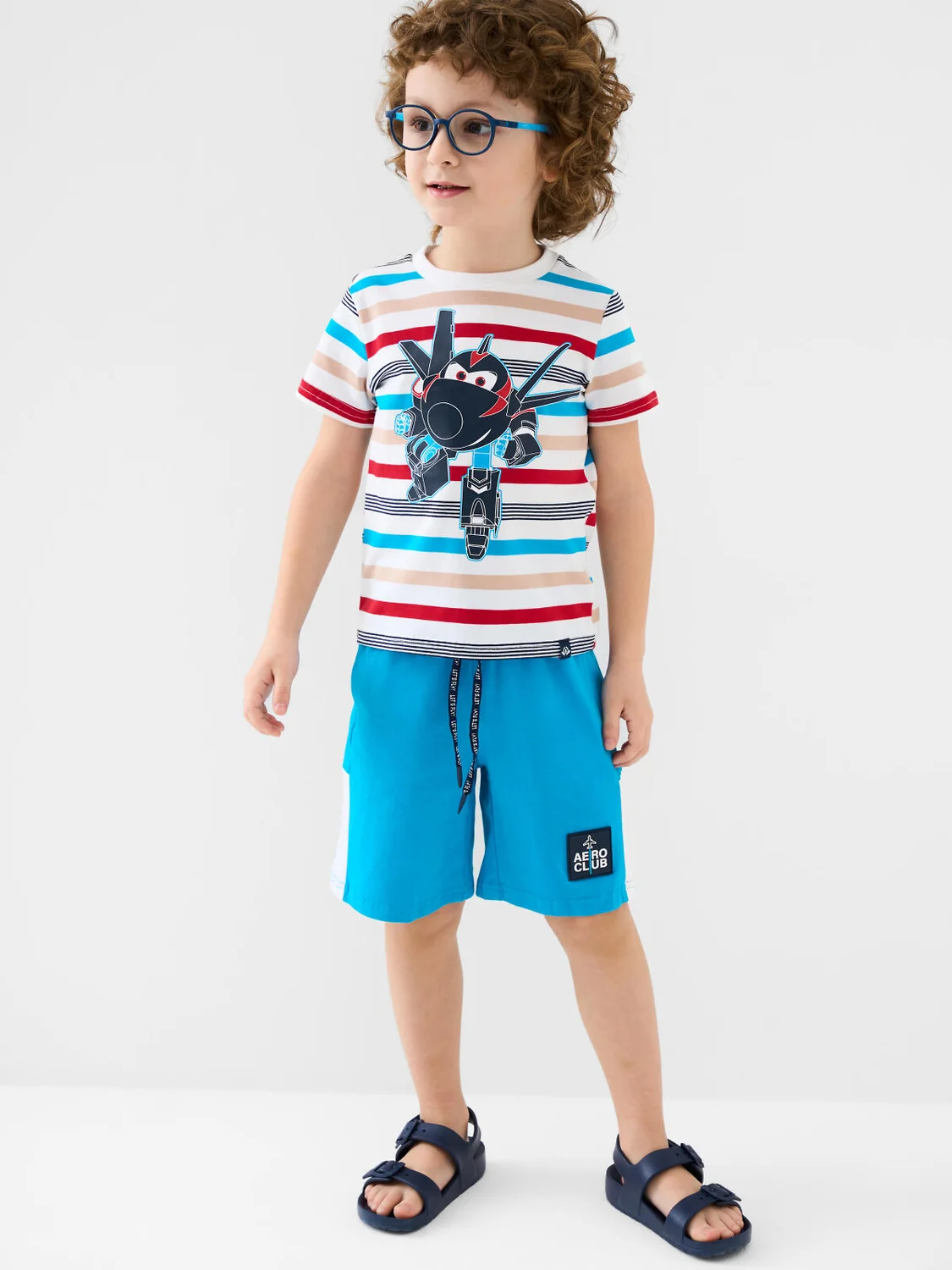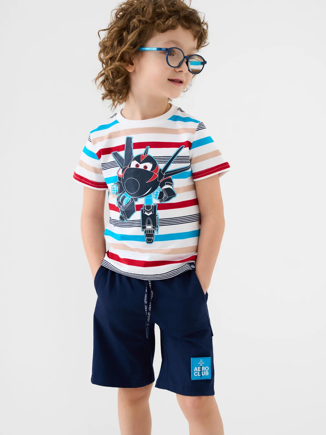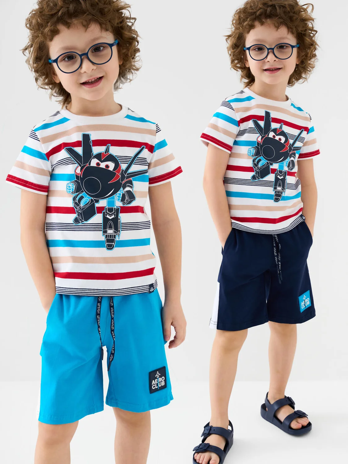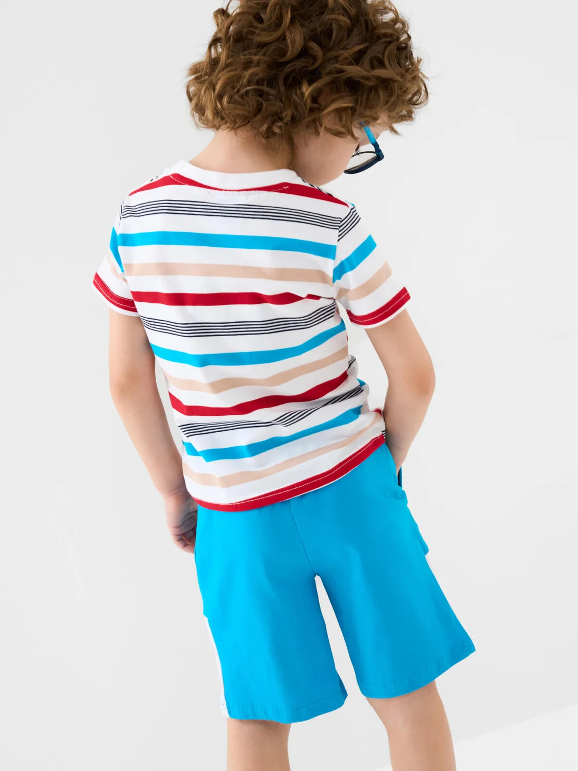 Набор детских шорт для мальчика. В комплект входят две пары шорт свободного кроя. Модели из мягкого, хлопкового трикотажа джерси. Удобная посадка обеспечивается эластичным поясом со шнуром. По бокам расположены два кармана.