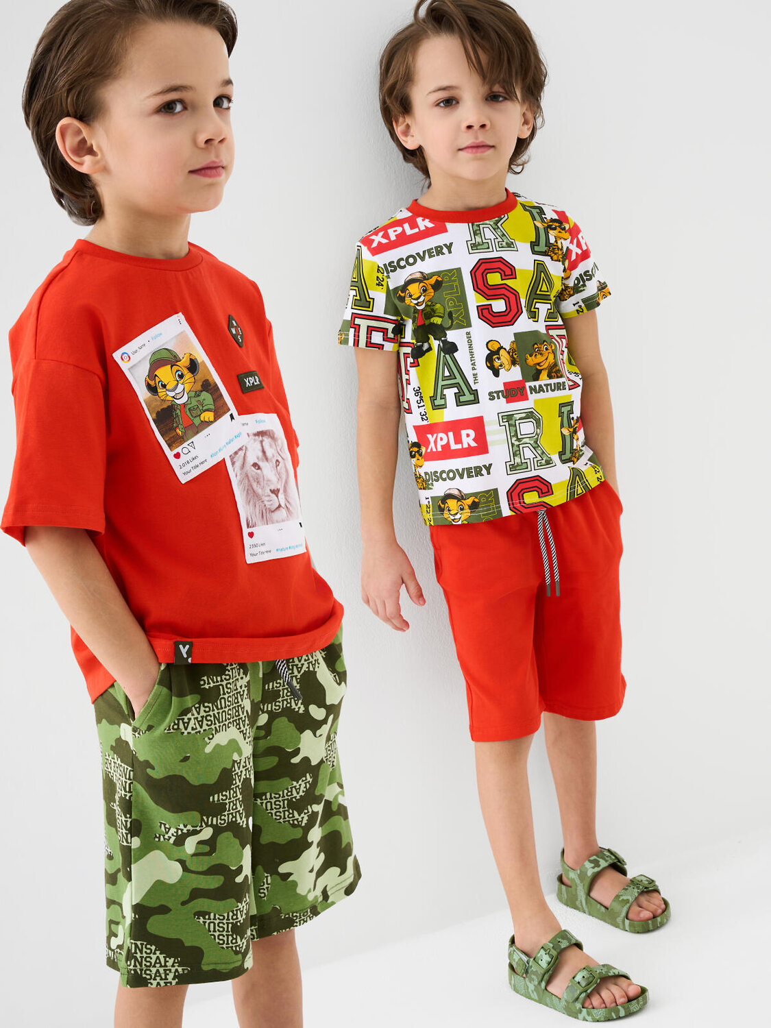 Набор детских шорт для мальчика. В комплект входят две пары шорт свободного кроя. Модели из мягкого, хлопкового трикотажа джерси. Удобная посадка обеспечивается эластичным поясом со шнуром. По бокам расположены два кармана.
