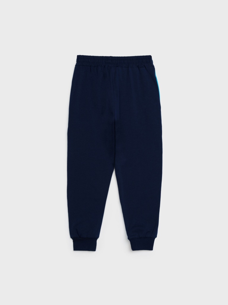 Брюки детские для мальчика. Штаны на резинке со шнурком. Высокое содержание хлопка. Удобные боковые карманы. Трикотажные манжеты. Модель выполнена из качественного и приятного на ощупь трикотажа.