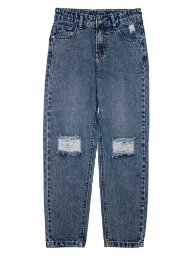 Джинсы, утепленные флисом. Посадка comfort fit – свободный крой брючин. Эластичный пояс со шнурком.