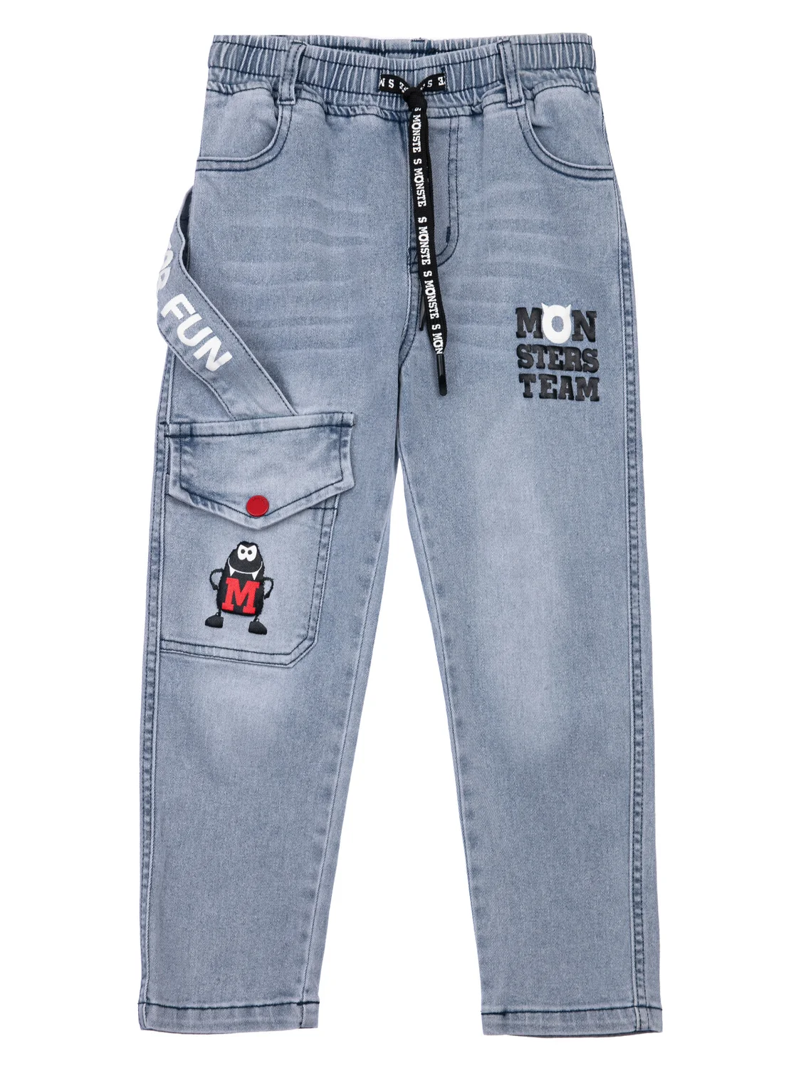 Джинсы из эластичного денима. Посадка comfort fit – свободный крой брючин. Комфортная посадка за счет внутренней утяжки. Функциональные карманы. Эластичный пояс с тесьмой позволяет легко надевать джинсы и утягивать до идеальной посадки в зависимости от комплекции ребенка.