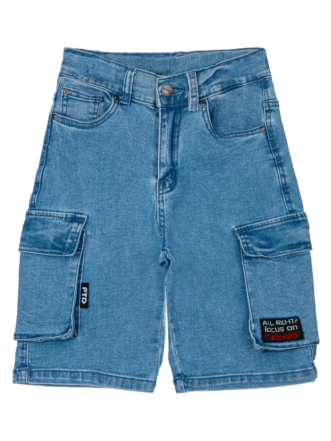 Шорты джинсовые прямого силуэта для мальчика., Модель дополнена внутренней утяжкой. Накладные карманы с клапанами на боковых швах.