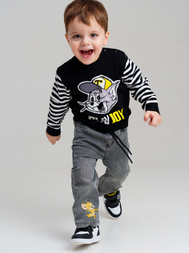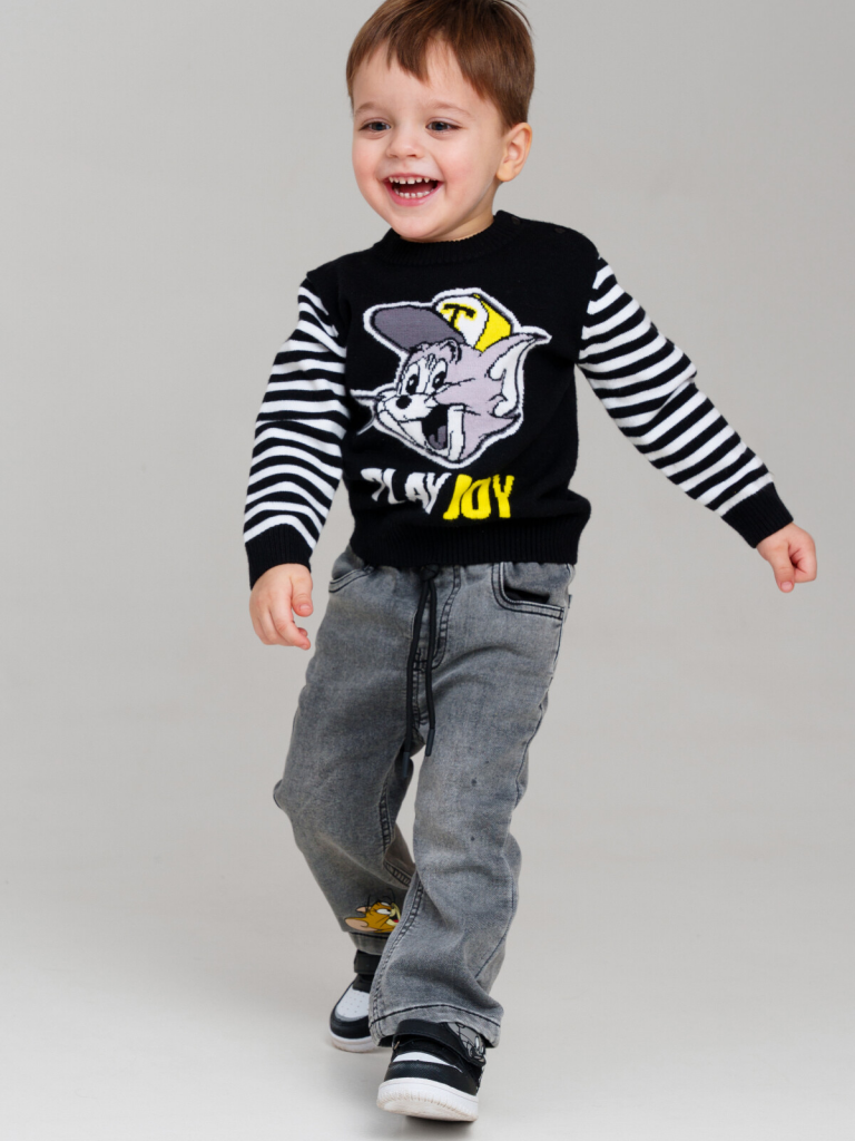 Ст.цена 1635р. Джемпер детский трикотажный для мальчиков черный,белый,жёлтый 12533026