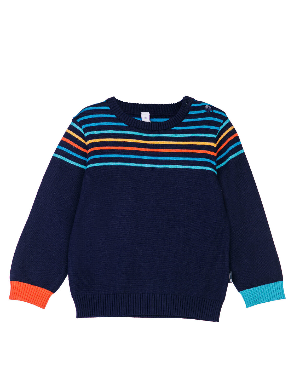 Джемпер из вязаного трикотажа. 50% вискоза. Вискоза отличается высокой гигроскопичностью - она впитывает влагу и отлично сохраняет тепло. Горловина, манжеты и низ изделия в рубчик. На плече застежка на пуговицы.