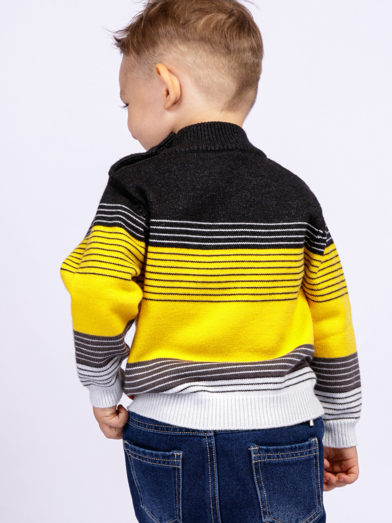 Свитер из вязаного трикотажа. 50% вискоза. Вискоза отличается высокой гигроскопичностью - она впитывает влагу и отлично сохраняет тепло. Воротник, манжеты и низ изделия в рубчик. На плече застежка на пуговицы.