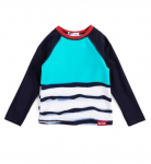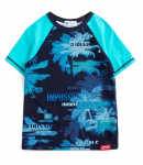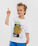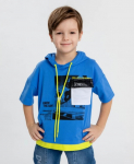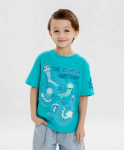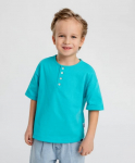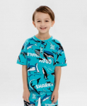 Футболка хенли с коротким рукавом. Голубая футболка усыпана летними принтами в виде акул и китов, которые поднимут настроение вашему малышу. Она изготовлена из хлопка и эластана. Такой состав обеспечивает комфорт и удобство в носке, хорошую растяжимость и простоту в уходе. Короткий рукав делает футболку идеальной для носки в жару. А если захочется успокоить образ и внедрить футболку в вечерний гардероб, стоит лишь дополнить её однотонной джинсовкой или рубашкой. Футболка легко сочетается с любыми брюками или шортами, что позволяет создавать разнообразные образы.