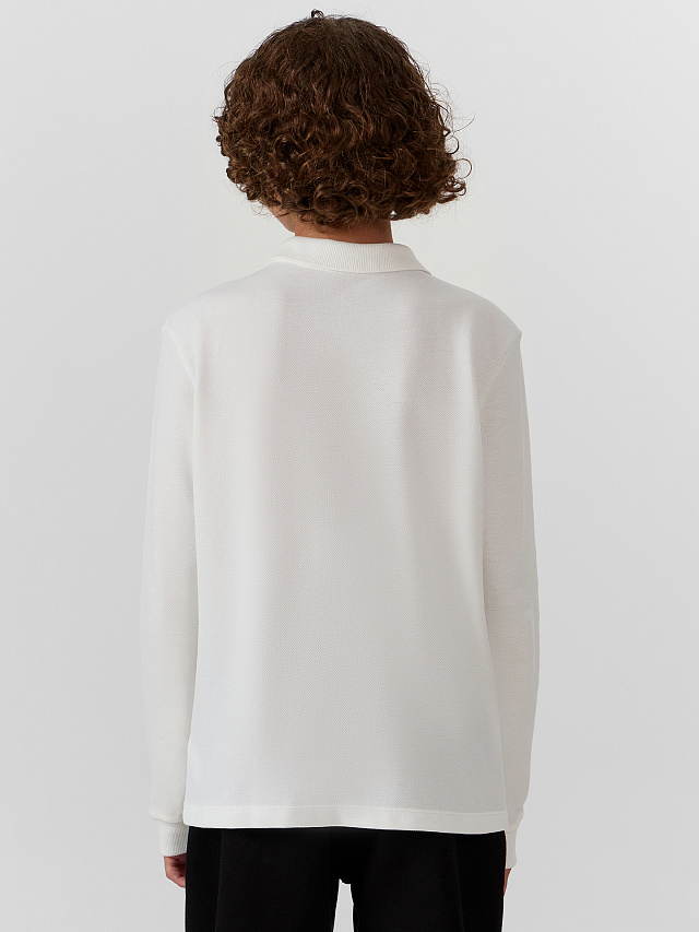 Поло для мальчиков прямого силуэта — это удобная и стильная модель, идеально подходящая для повседневной носки и активного образа жизни. Изделие выполнено из хлопкового пике, материала, отличающегося прочностью, воздухопроницаемостью и приятной текстурой, благодаря чему оно комфортно ощущается на теле и хорошо сохраняет форму. Длинные рукава дополнены эластичными манжетами из рибаны, которые мягко облегают запястья и обеспечивают надежную посадку без стеснения движений. Слегка спущенное плечо придает образу расслабленный, современный вид, а округлая горловина делает модель универсальной и легко сочетаемой с другими элементами гардероба. Застежка на петли и пуговицы спереди добавляет классический акцент и позволяет регулировать посадку по вороту. Такое поло станет отличным выбором для школы, прогулок или семейных мероприятий, сочетая в себе практичность, комфорт и актуальный стиль.