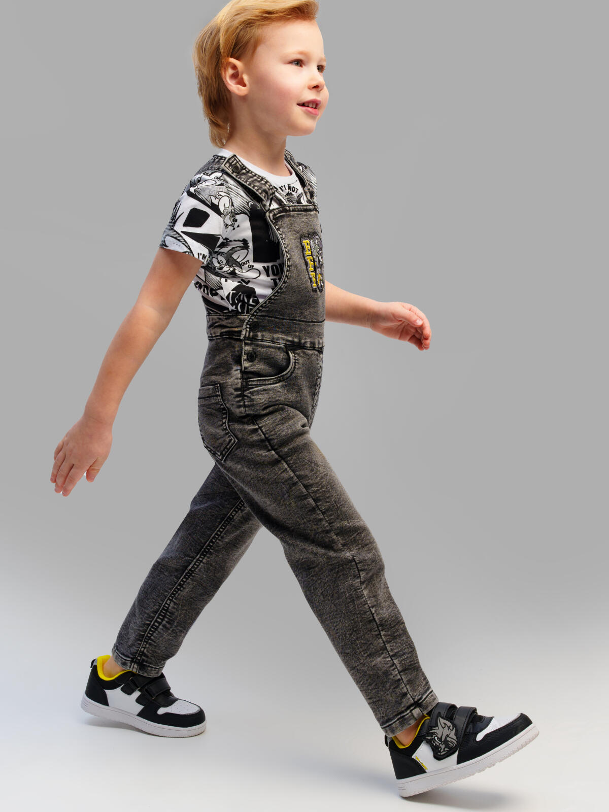 Детский джинсовый комбинезон для мальчика. Джинсовый комбинезон-ромпер из эластичного денима. Посадка regular fit – классический крой. Регулируемые по длине лямки. Пояс с застежкой на кнопки и с внутренней утяжкой. Функциональные карманы.
