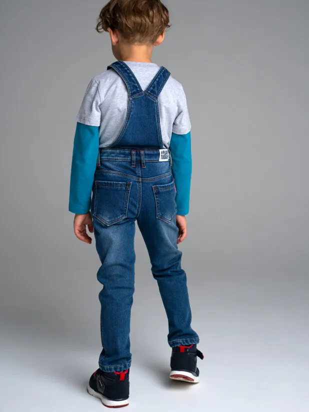 Полукомбинезон текстильный джинсовый утепленный флисом для мальчиков