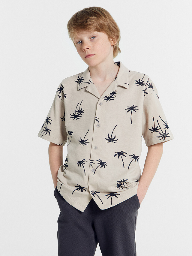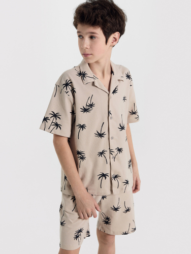 Рубашка для мальчиков бежево-серая с пальмами