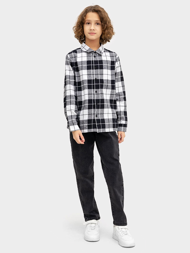 Создавайте актуальные образы с этой стильной рубашкой в клетку для мальчика, выполненной из высококачественного хлопка. Длинные рукава с манжетами добавляют элегантности, а застежка на пуговицах по всей длине обеспечивает удобство. Эта рубашка станетотличным выбором для лаконичных и стильных образов в школу, а также для повседневной носки. Дополните её базовым низом из нашей линейки детской одежды для создания завершенного образа.