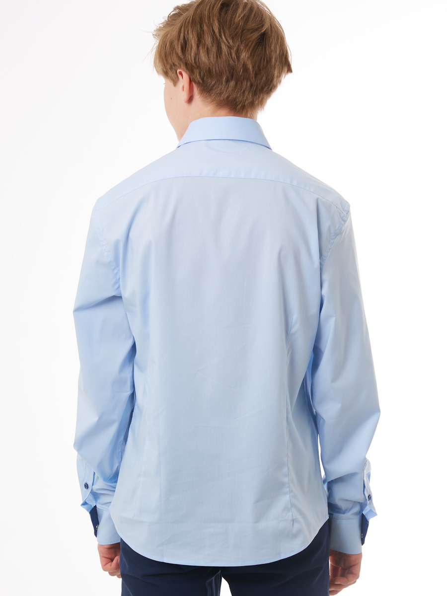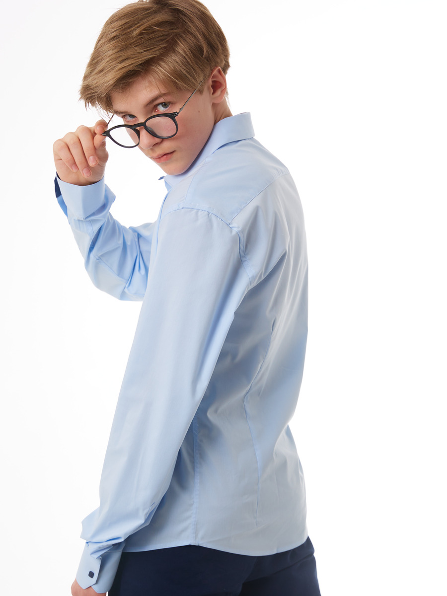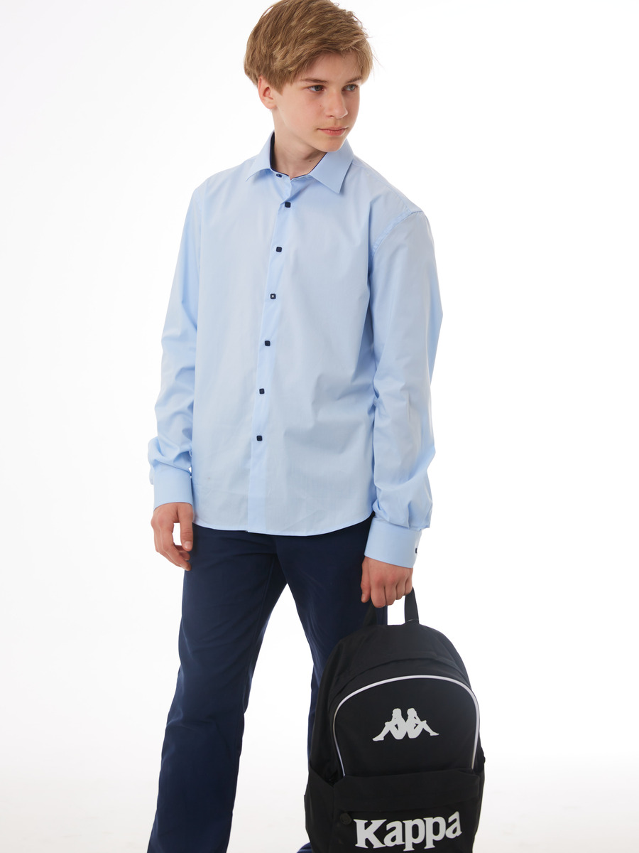 Классическая белая сорочка на кнопках подойдет в школу, на праздник и на выпускной. Модель полуприлегающего силуэта с длинным рукавом и контрастным темно-синим внутренним воротником-стойкой. Сорочка выполнена из качественной ткани с высоким содержанием вискозы, что позволяет вашему ребенку чувствовать себя комфортно. Сорочка идеальна для гардероба как часть школьной формы, она идеально сочетается с классическими брюками. Широкий размерный ряд позволяет подобрать сорочку как для детей школьного возраста, так и для подростков. Стильная сорочка станет модной вещью в гардеробе вашего сына.