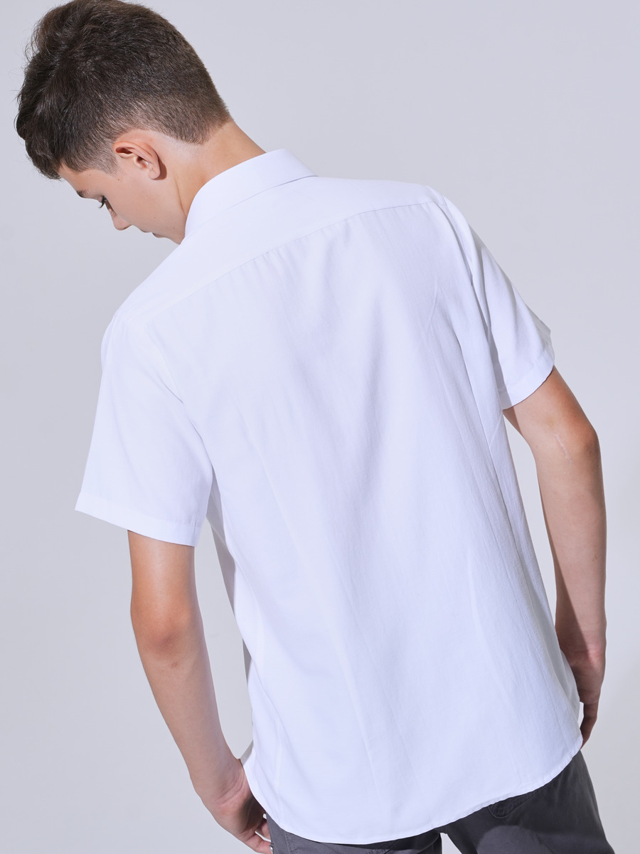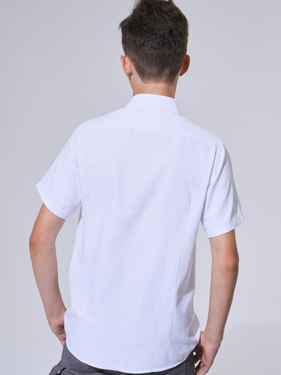 Классическая белая сорочка на пуговицах подойдет в школу, на праздник и на выпускной. Модель полуприлегающего силуэта с коротким рукавом. Сорочка выполнена из качественной ткани с высоким содержанием хлопка, что позволяет вашему ребенку чувствовать себя комфортно. Сорочка идеальна для гардероба как часть школьной формы, она идеально сочетается с классическими брюками. Широкий размерный ряд позволяет подобрать сорочку как для детей школьного возраста, так и для подростков. Стильня сорочка станет незаменимой вещью в гардеробе вашего сына.