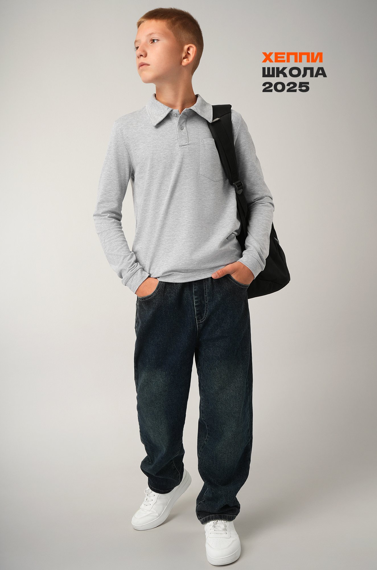 Базовая серая футболка-поло — отличное решение для школы, прогулок и повседневных образов.