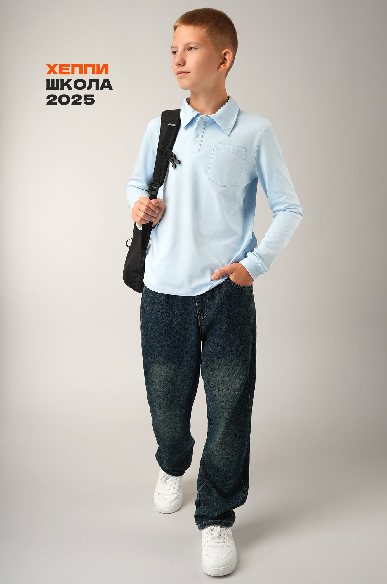 Базовая голубая футболка-поло — отличное решение для школы, прогулок и повседневных образов.