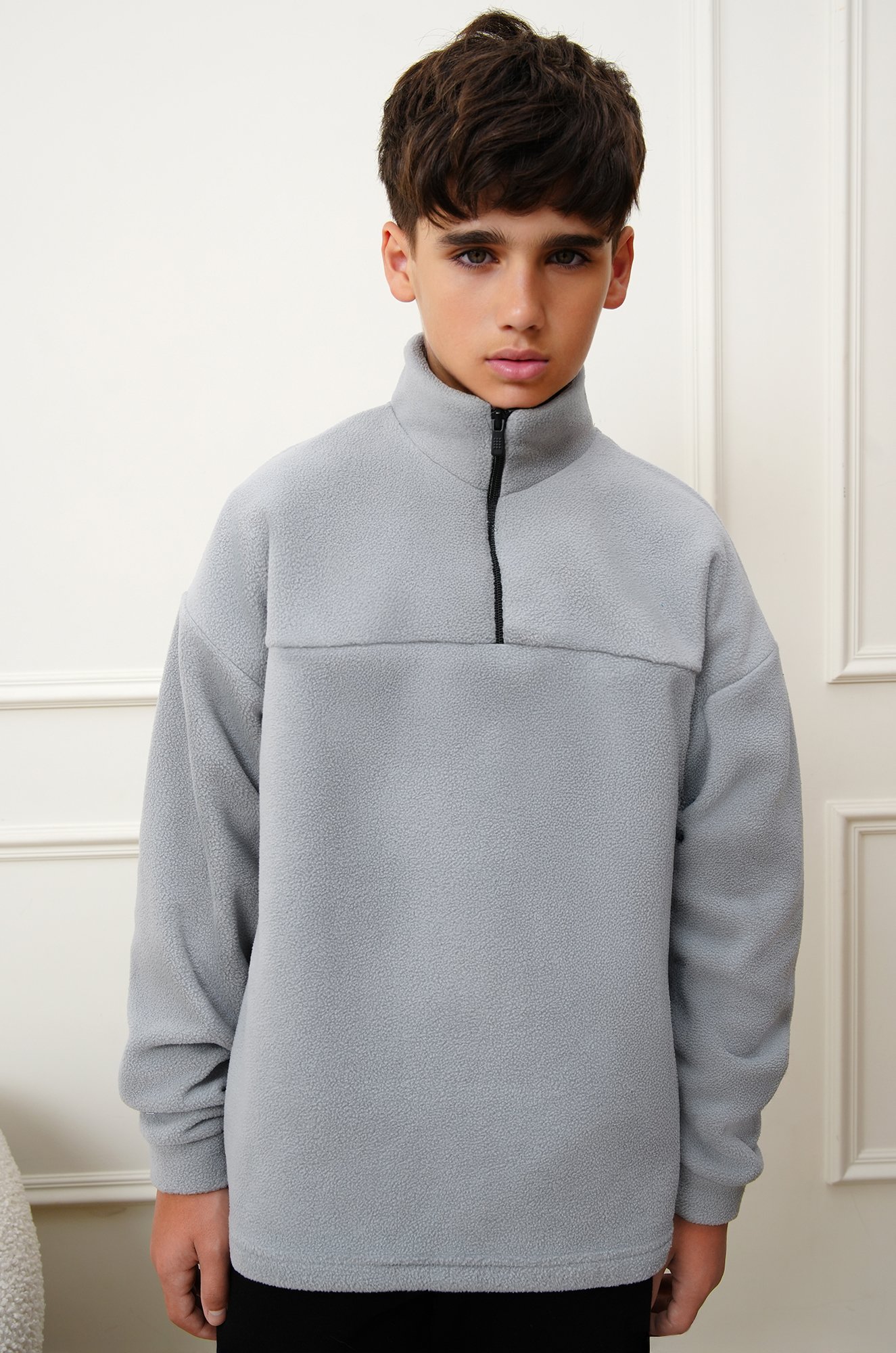 Флисовая толстовка для мальчиков и мал..показатььчиков подростков создана для комфорта и тепла в прохладные дни. Свободный крой и воротник на молнии делают детскую олимпийку удобной для школы, прогулок и активного отдыха осенью. Серая толстовка на молнии станет стильным акцентом в повседневном образе.