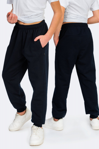 Дышащая хлопковая ткань с добавлением синтетических волокон прекрасно держит форму. По низу располагаются манжеты, которые не дадут брюкам задираться при активных играх и защитят от холодного воздуха. Пояс утягивается шнурком, по бокам удобные карманы.