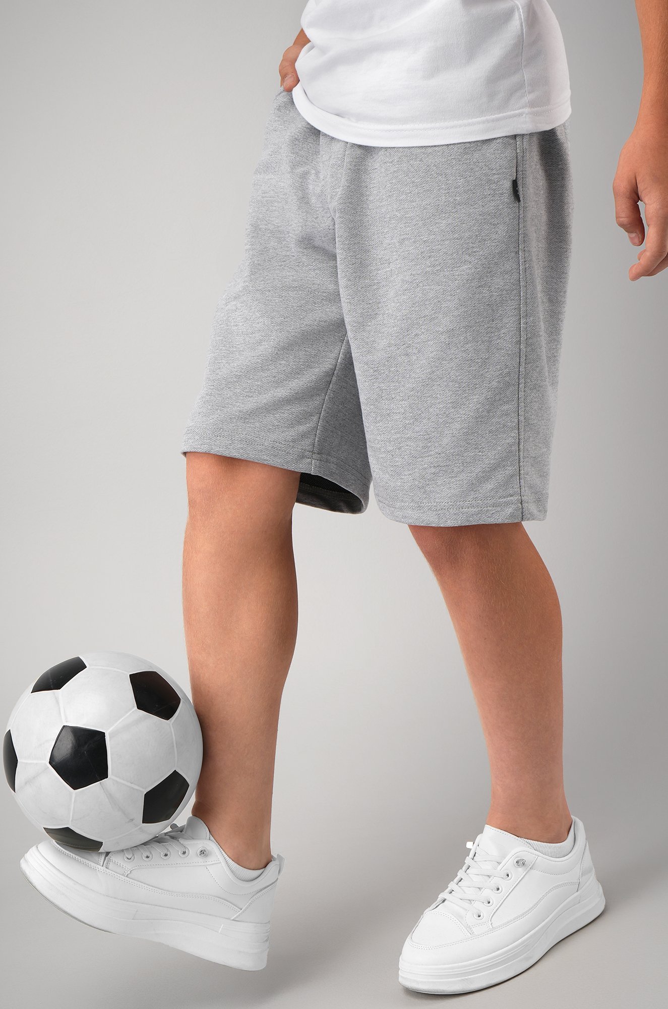 Школьные шорты для мальчиков и подрост..показатьков — отличный выбор для занятий спортом, уроков физкультуры и активного отдыха.Серые шорты выполнены из плотной трикотажной ткани футер, что делает её удобной и долговечной.