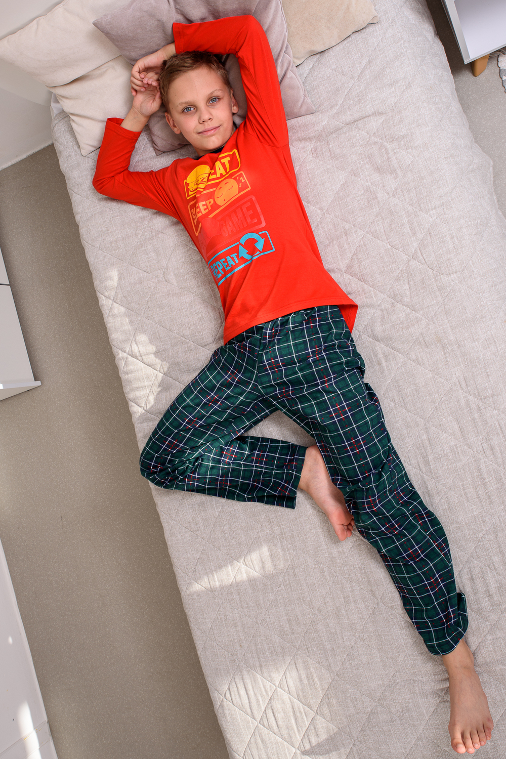 Пижама для мальчика от бренда SHKETOFF представляет собой комфортное и стильное решение для сна и отдыха. Эта модель выполнена в классическом стиле клетки, что делает её универсальной и подходящей для любого возраста. Брюки пижамы без карманов изготовлены из мягкого трикотажа , обеспечивающего хорошую вентиляцию и комфорт даже в жаркую погоду, ширина по талии регулируется резинкой . Лонгслив также выполнен из высококачественного трикотажа - кулирка хлопок, обеспечивающего хороший внешний вид и износостойкость. Комплект отличается высоким качеством изготовления и долговечностью, что делает её отличным выбором для повседневного использования. Этот наряд подчеркнет индивидуальность и стиль мальчика, сделав его ночь более приятной и комфортной. Цвет: синий;красный; Материал: кулирка пенье; Состав: хлопок 100%.