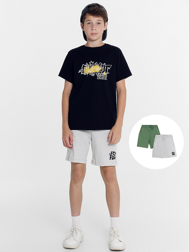 Шорты для мальчиков мльтипак (2 шт.) в сером и зеленом цвете с печатью
