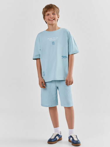 Шорты для мальчиков прямого силуэта из высококачественного 100% хлопка. Посадка средняя. Длина выше колена. Пояс цельнокроеный с эластичной тесьмой и шнуром внутри. На передних деталях брюк есть карманы-хулиганы. На передней левой детали проложены отделочные строчки - имитация гульфика. Мягкие и приятные шорты для мальчиков — идеальный вариант для летних жарких дней. Подходят для ежедневной носки, прогулок, игр и встреч с друзьями. Рекомендуем эту стильную модель!