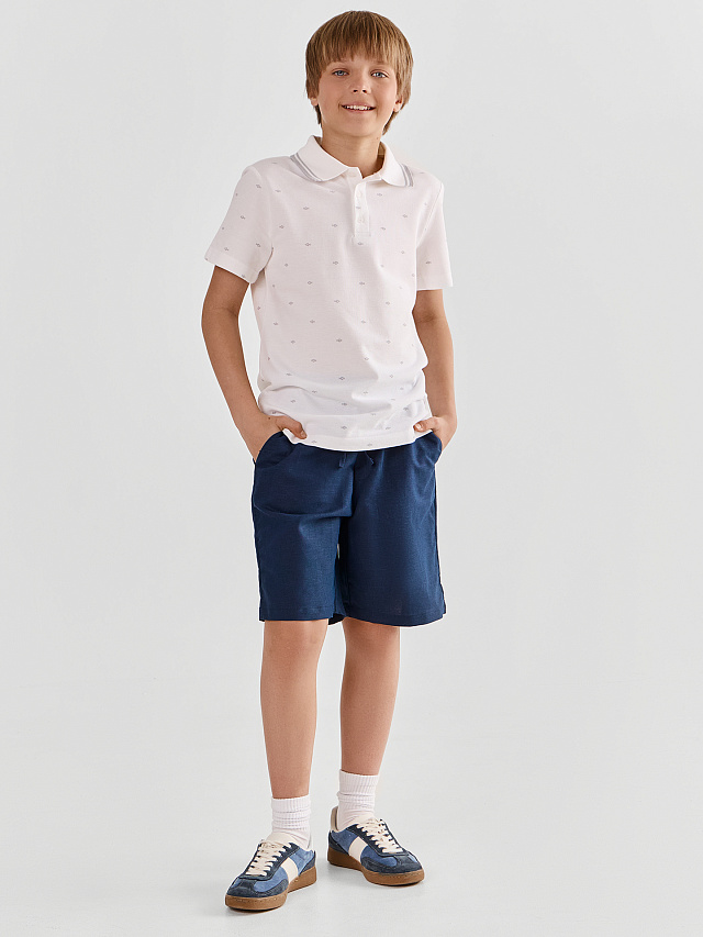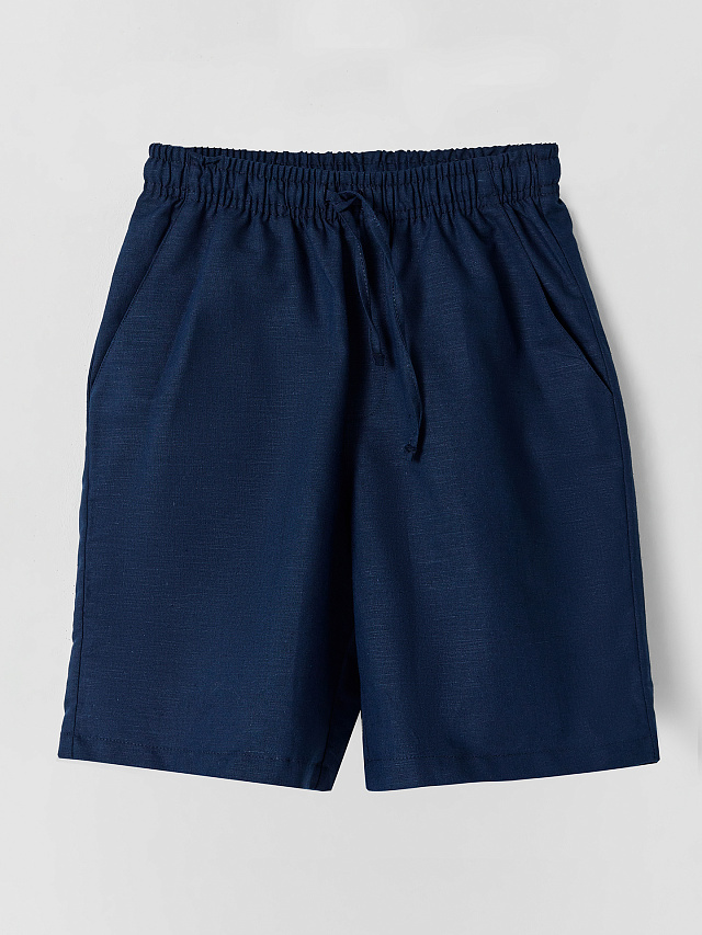 Шорты для мальчиков прямого силуэта со средней посадкой – отличный выбор для комфортного и стильного повседневного образа. Эластичный пояс обеспечивает удобную посадку, а боковые карманы добавляют практичности. Низ шорт обработан швом вподгибку, что придаёт им аккуратный и завершённый вид. Модель, выполненная из сочетания хлопка и льна, обеспечивает отличную воздухопроницаемость и комфорт в теплую погоду.