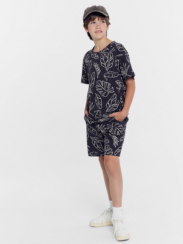 Шорты для мальчиков темно-серые с пальмами
