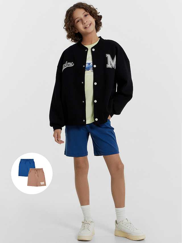 Шорты для мальчиков мультипак (2 шт.) из 100% хлопка. Модель длиной до колена. Спереди есть функциональные карманы «хулиганы». Пояс с эластичной резиной внутри и регулировочным шнуром. Модель стильная и невероятно комфортная — лучшее решение для жаркого летнего сезона. Дополнить можно верхом на свой вкус из линейки базовой детской одежды. Широкий размерный и цветовой ряд. Рекомендуем!