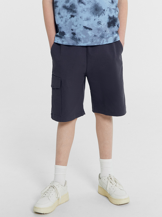 Шорты для мальчиков прямого силуэта из высококачественного хлопка. Посадка средняя. Длина выше колена. Пояс цельнокроеный с эластичной тесьмой и шнуром внутри. На передних деталях брюк есть один карман с клапаном, а также выполнены боковые функциональные карманы. Мягкие и приятные шорты для мальчиков — идеальный вариант для летних жарких дней. Подходят для ежедневной носки, прогулок, игр и встреч с друзьями. Рекомендуем эту стильную модель!