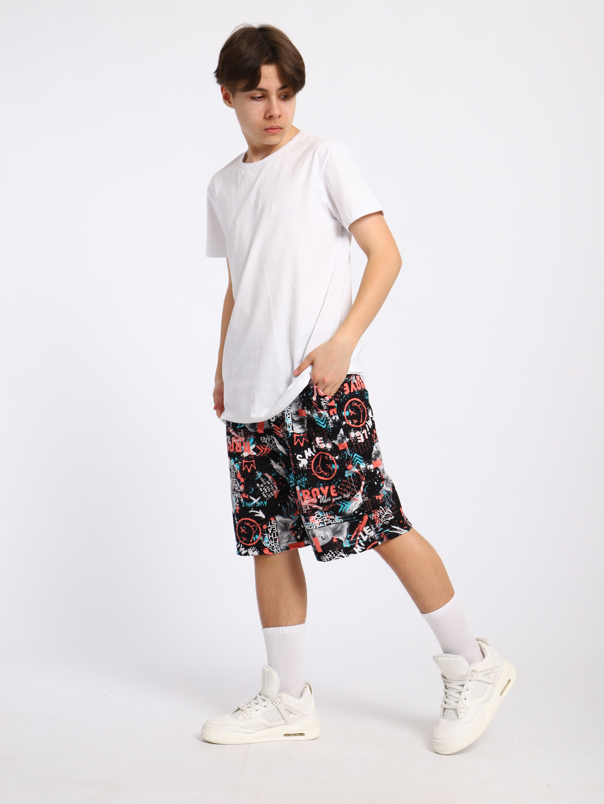 Летние легкие шорты для мальчиков-подростков с ярким молодежным принтом. Крой широкий свободный до колен с удобными кармашки в боковых швах. Пояс на комфортной широкой резинке. За счет удобной длины и свободного кроя, летние бриджи для мальчика позволяют активно двигаться, играть, заниматься спортивными играми даже в самую жаркую погоду. Модные яркие шорты составят  основу летнего гардероба мальчика-подростка, подходят на каждый день, на пляж, на дачу, на море, для отдыха, а также для физкультуры в школе, занятий спортом, бегом, для тренировок. Можно комплектовать с футболкой. Лонгсливом, облегченной толстовкой ,свитшотом, худи.