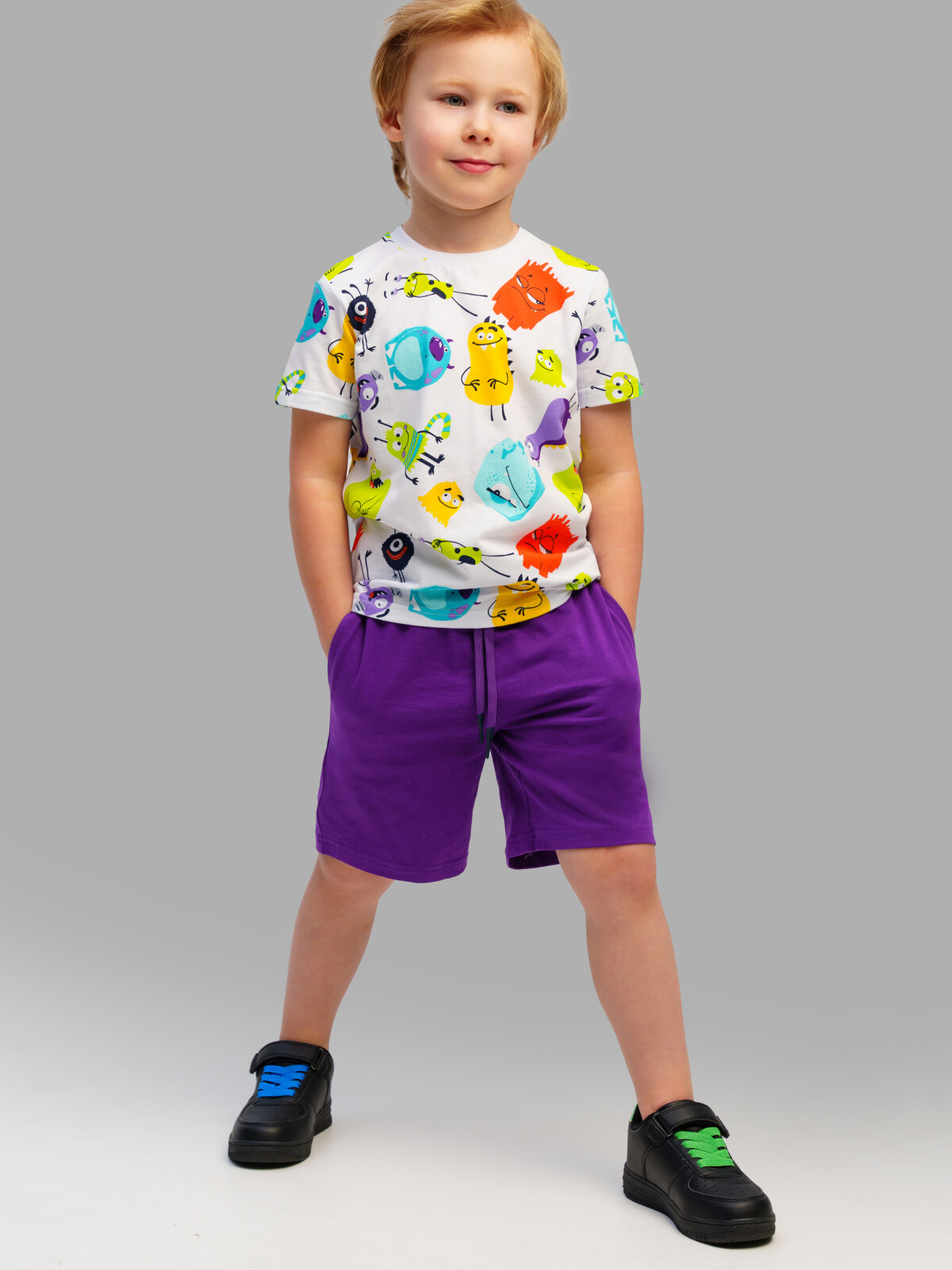 Набор детских шорт для мальчика. Комплект шорт из качественного и приятного на ощупь трикотажа джерси. Шорты на резинке со шнурком. Боковые карманы. Высокое содержание хлопка 95%. Благодаря наличию эластана в составе ткани изделие держит форму и меньше мнется. Модель выполнена из качественного и приятного на ощупь трикотажа.