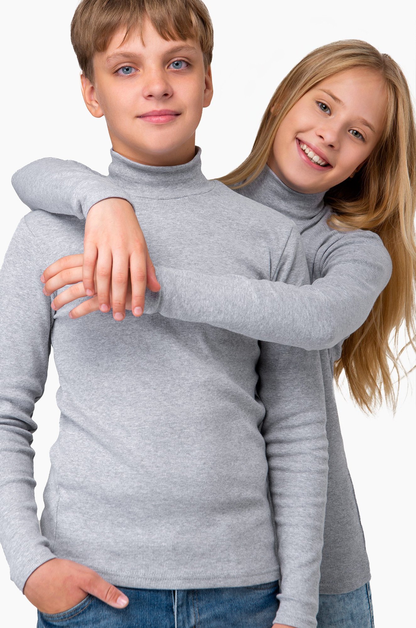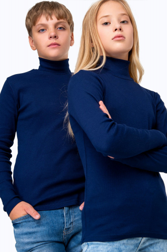 Школьная водолазка в рубчик для детей и подростков выполнена из хлопкового трикотажа лапша.