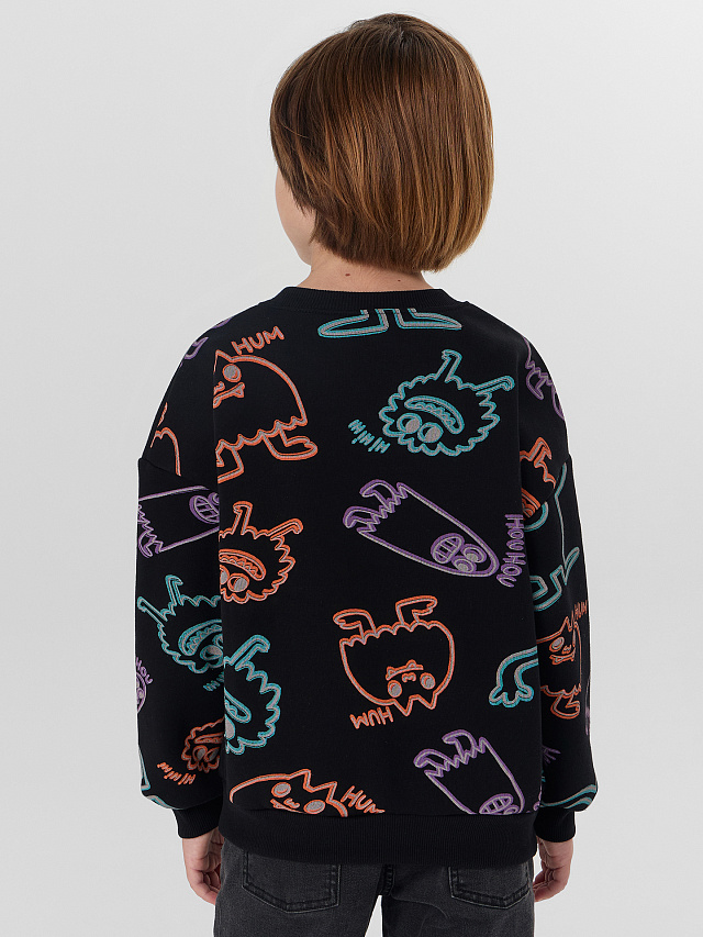 Свитшот для мальчика с мягким начесом внутри — это идеальная база для повседневной носки. Он не только создаёт ощущение уюта и прекрасно сохраняет тепло в прохладные дни, но и обеспечивает полную свободу движений благодаря свободному крою и спущенной линии плеча.
