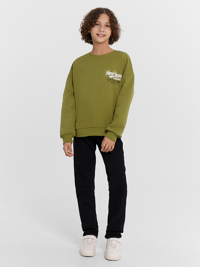 Свитшот для мальчиков оливковый с принтом "next level loading"