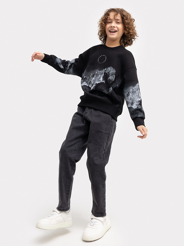 Свитшот для мальчиков в черном цвете с оригинальным принтом
