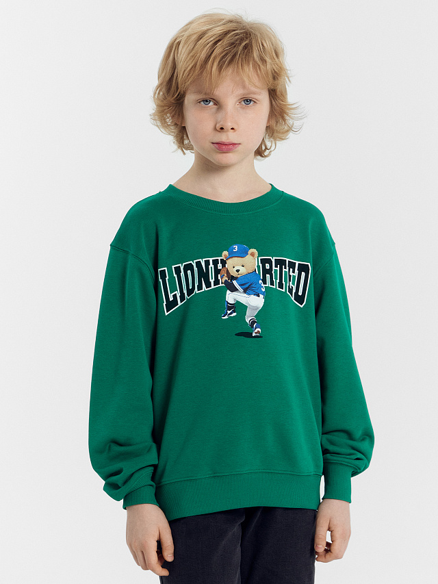 Свитшот для мальчиков в малахитово-зеленом цвете с печатью