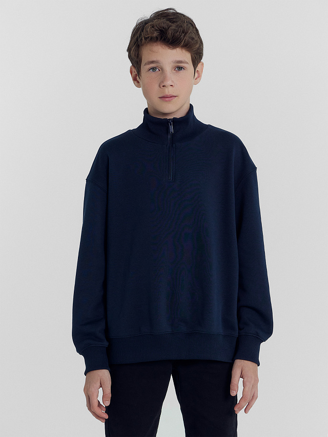 Детский свитшот для мальчиков свободного силуэта из высосокачественного хлопка. Материал мягкий, отлично тянется и не стесняет движения. Рукава длинные. Линия плеча спущена, горловина круглой формы с воротником. Спереди изделия есть застежка-молния. По низу рукавов и джемпера - манжеты и пояс из рибаны. Комфортная модель для создания уютного образа на любой случай жизни. Широкий размерный ряд. Отличный выбор для вашего ребенка на каждый день, в школу и на прогулки с друзьями!