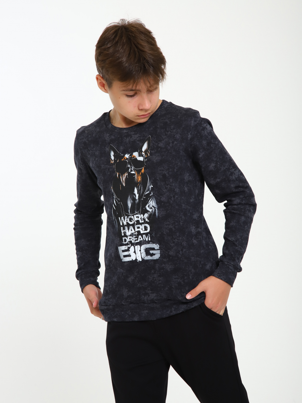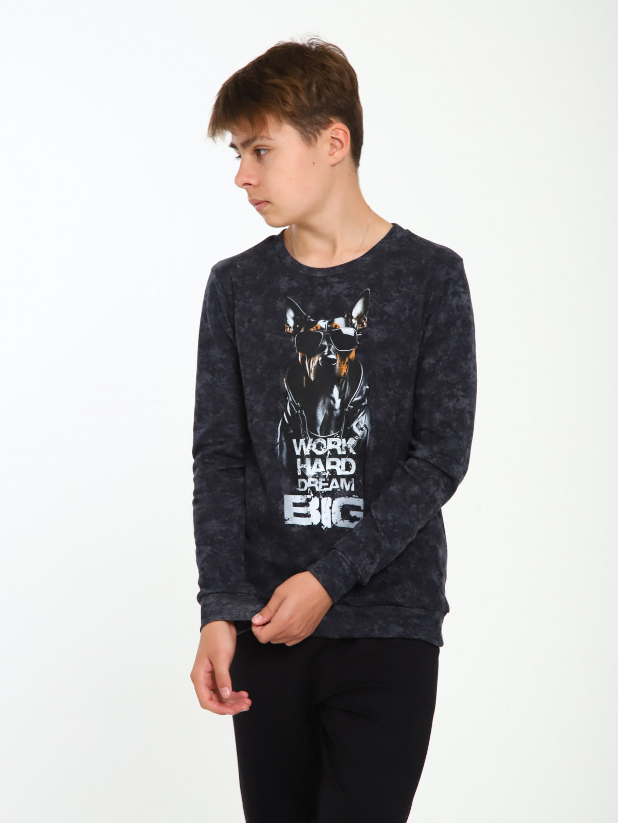 Свитшот для мальчика подростка с теплым начесом внутри. Кофта для подростка с рисунком добермана будет отличным дополнением гардероба. Кофта для мальчика имеет идеальную посадку на фигуре. Свитшот черный, это делает его универсальным и стильным. Детский джемпер из натурального хлопкового трикотажа на флисе, который обеспечивает комфорт и мягкость на протяжении всего дня.