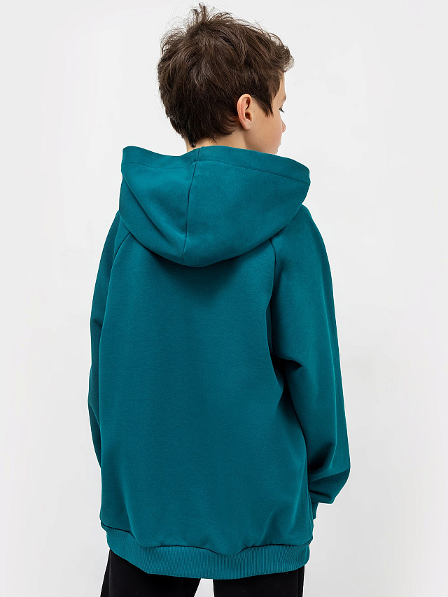 Свободное изумрудное худи с текстовым принтом для мальчиков