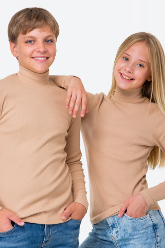 Детская водолазка в рубчик для мальчиков и девочек выполнена из хлопкового трикотажа лапша.