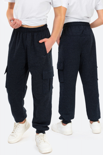 Детские спортивные брюки для мальчиков и подростков выполнены из приятного к телу хлопкового футера. Практичные синие джоггеры с эластичным поясом на резинке идеально подходят для физкультуры в школу.
