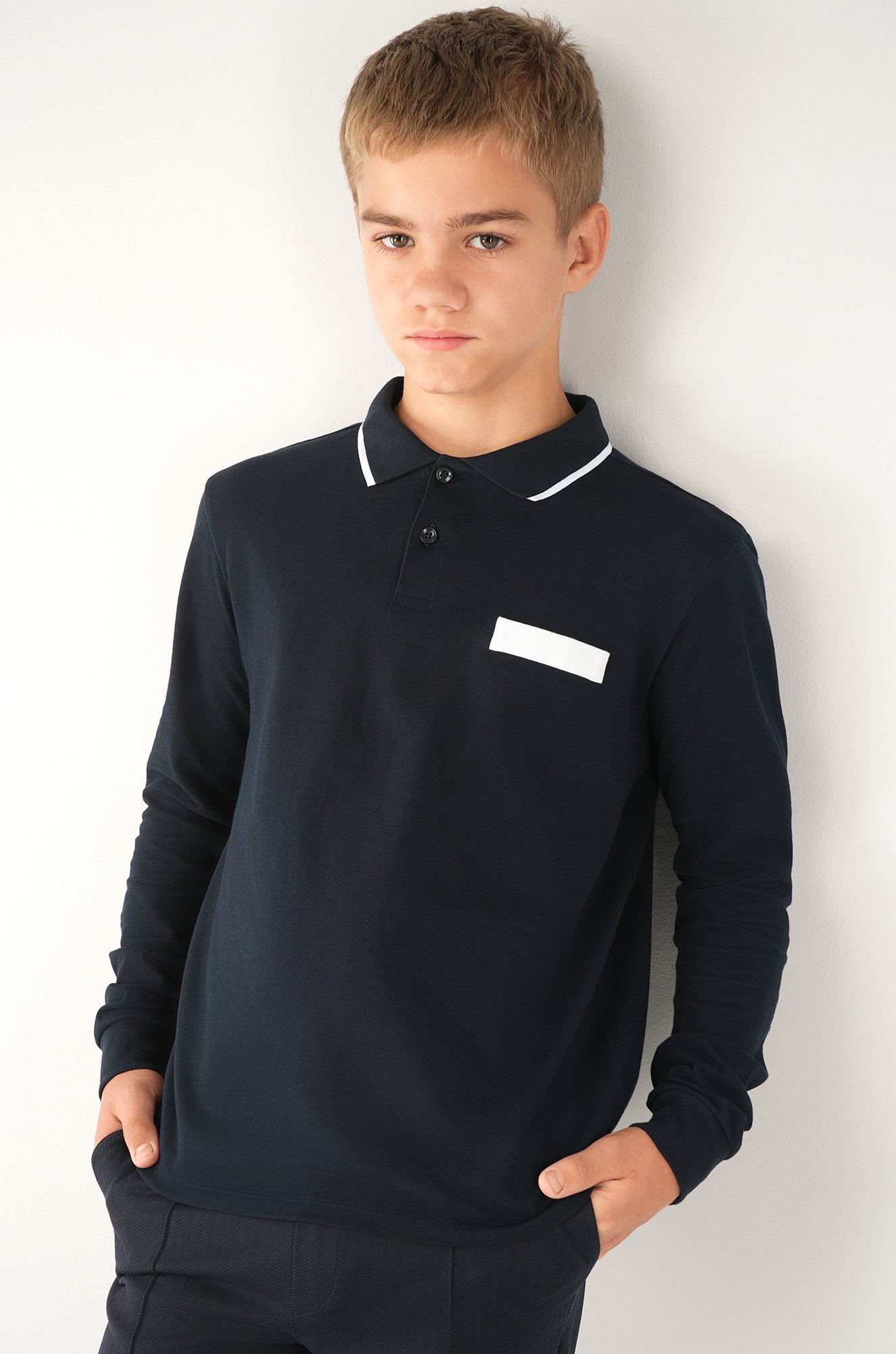 Прямой крой, вязаный воротник и застежка на пуговицы создают аккуратный силуэт. Хлопковая подростковая рубашка-поло легко подойдет как детский лонгслив и станет идеальным повседневным вариантом для многослойных образов школьника.